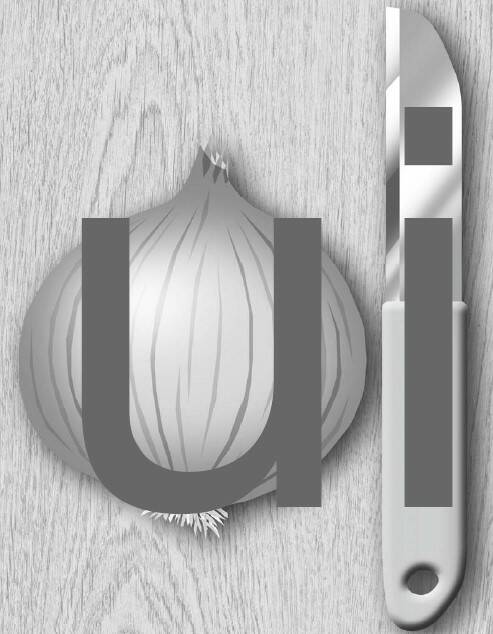 De letter 'u' past mooi in mijn ui. De letter 'i' in mijn mes